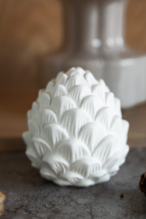 Dekoration aus matter Keramik. Berghamn ist ein eleganter Tannenzapfen, der in jedem Raum des Hauses eine schöne Figur macht und eine gemütliche Herbststimmung verbreitet. Stellen Sie ihn allein oder in einer Gruppe auf. Oder dekorieren Sie ihn doch einfach in Ihrem Lidatorp.