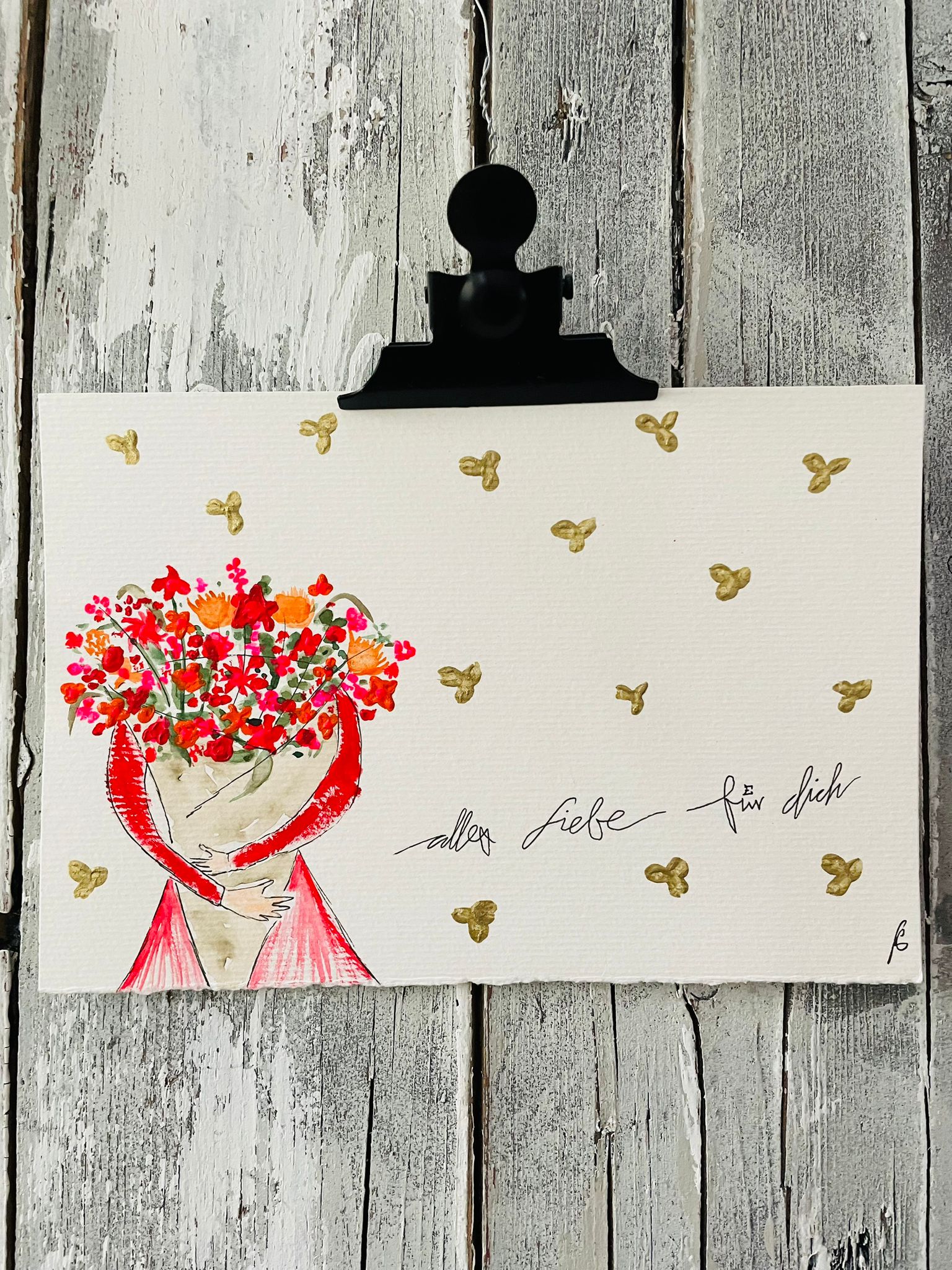 Hier entsteht Design mit Herz. Verenas Karten sind HANDMADE und daher wahre Unikate mit möglichen Farb- und Schriftabweichungen. Jede Karte ist einzigartig und voller Herzblut kreiert. Die Karte hat ein Maß von 21 x 14 cm und besteht aus hochwertigem Aquarellpapier. Lasse deine Grüße in einem besonderen Stil sprechen.