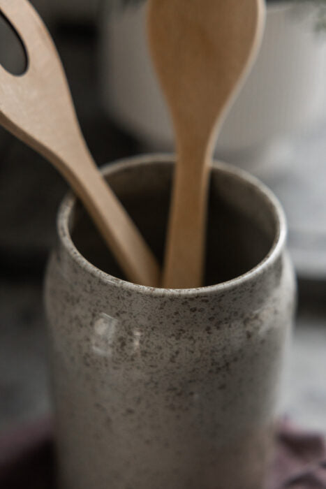 Glasierte Vase mit Muster. Das stilvolle Design passt in jedes Zuhause und ist sowohl für den Sommerstrauß als auch für getrocknete Zweige oder den Fichtenzweig in den Wintermonaten geeignet. Auch schlicht oder mit Küchenutensilien darin sieht sie gut aus.